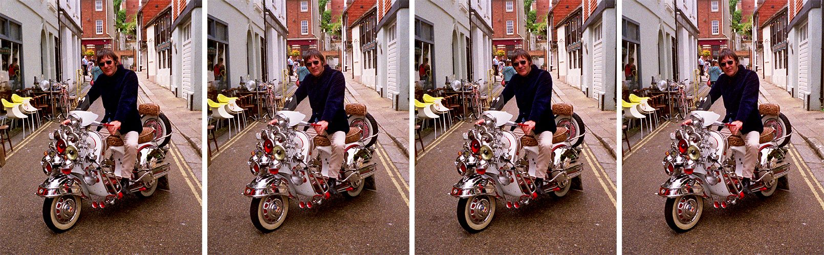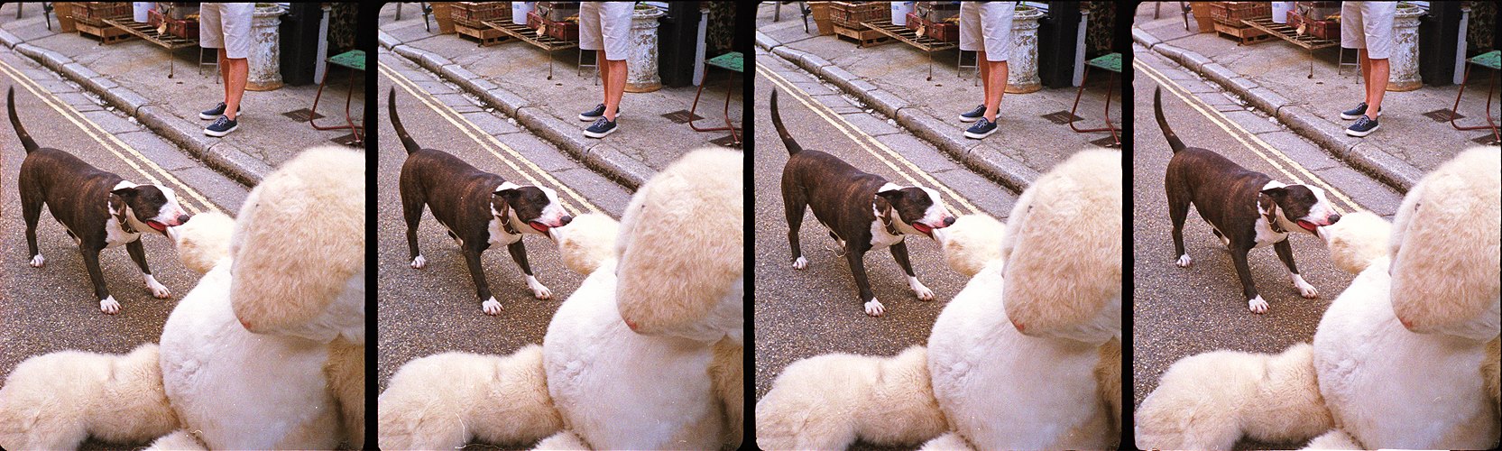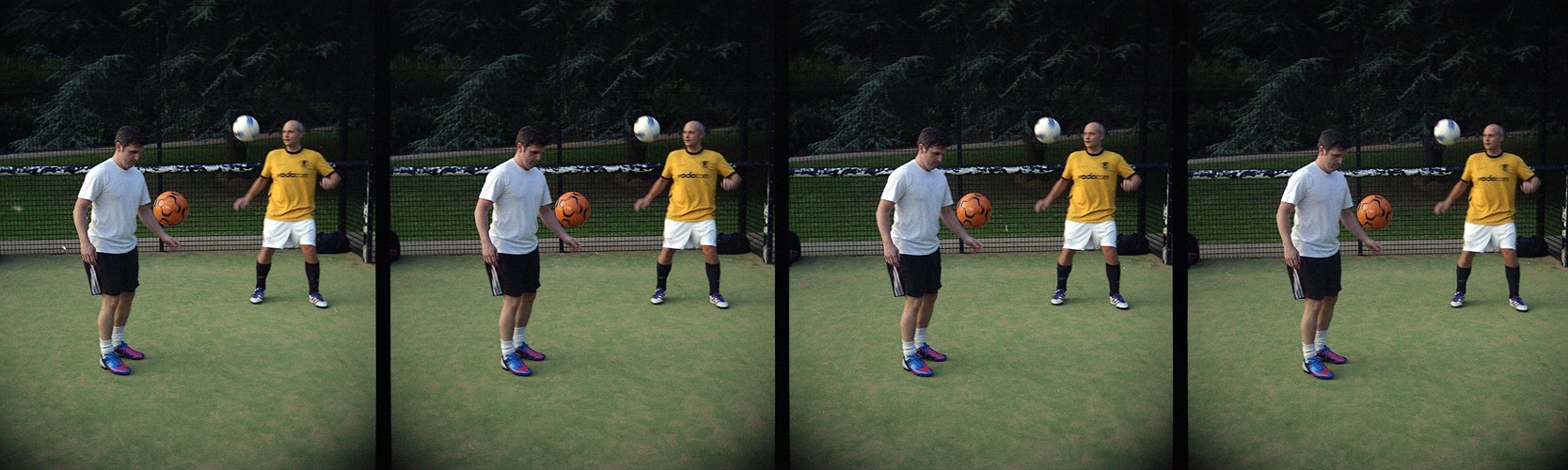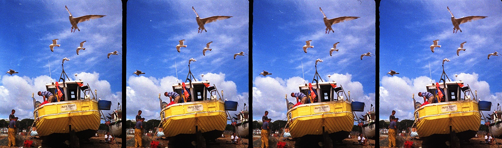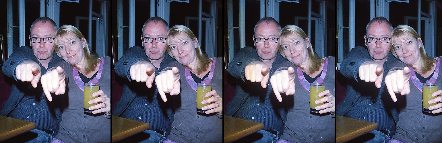 Animated versions here - johnnyhodgson.tumblr.com 4 photos taken at the same time from slightly different angles giving a 3d effect - if you can trick your brain into seeing them.